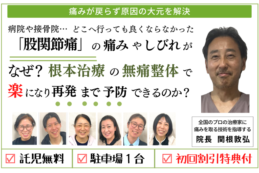 股関節痛 2025.11.15 股関節痛 VOICE 「キツい階段の上り下りが改善!膝の痛みの原因は骨盤の歪み?!」 東京都 会社員 Yさん 歩くのがつらくて自転車通勤していましたが整体で普通に歩けるようになりました。膝痛の原因が、実は姿勢の悪化による骨盤の歪みや股関節や足首の柔軟性に問題があったなんてびっくり!丁寧な施術と的確な説明で安心して任せることができ、通うごとに膝や腰の痛みも和らぎ、再発もしてません。諦めなくて本当良かった。 お問合せ・ご相談はこちら 営業時間:10:00〜19:00 休業日:月曜・日曜・祝日 完全予約制 お気軽にお問合せください
